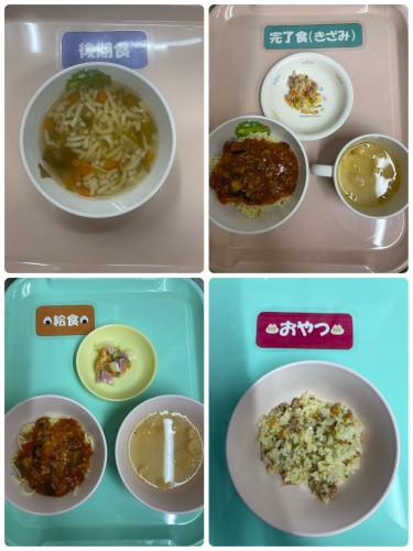 後期 野菜煮込みうどん 完了食、普通食 なすのミートスパ...