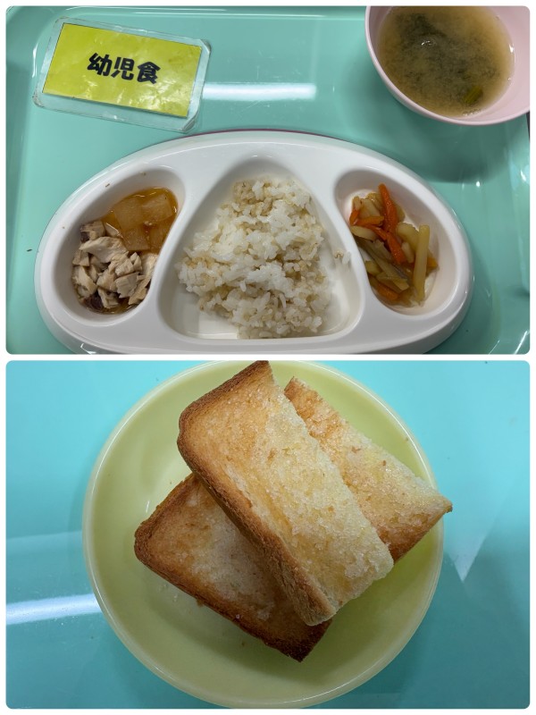 ご飯、ぶり大根、じゃがいもきんぴら、みそ汁 15時のおやつ シュガートースト