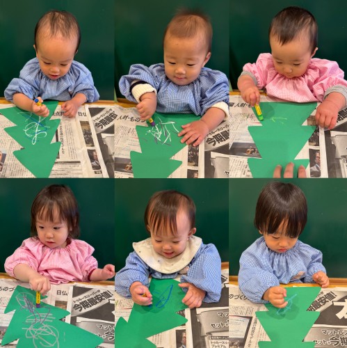 12月の製作をしました!🎅🏻🎄 2025/11/25(火) 今日は12月の製作をしました。初めてパステルを使いツリーになぐり描きをしました。自分で好きな色のパステルを選び手に持つとぐるぐると書いたりとんとんしたり上手に描くことができました🎄⭐️デコレーションボー...