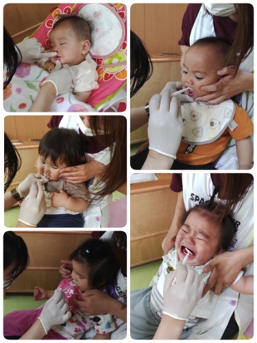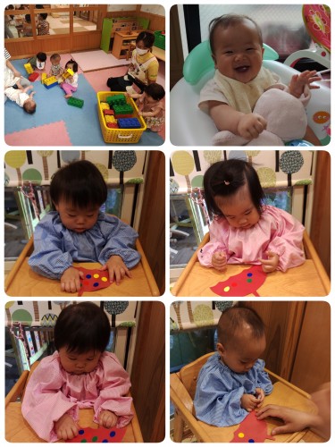 たのしいね☂️🐌 2022/06/16(木) 昨日はあじさい広場に遊びに行きました!あじさいを見ると興味津々に手を伸ばしていましたよ🥰今日は実習にきているお姉ちゃん先生がもってきてくれたセンサリーバックで感触遊びをしました!とっても楽しかったね🎶