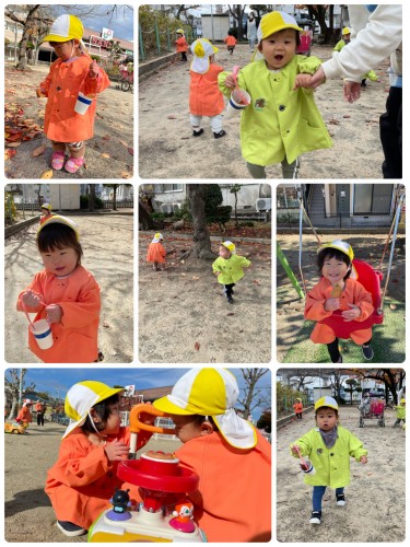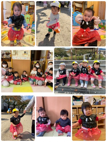 ハロウィン👻 2021/10/28(木) 今日は、ミッキーとミニーに仮装して英会話に参加しました!ハロウィンの歌を歌ったり、オバケのカードを見たりと楽しみました🎃その後は公園へお散歩に🚶♂️鞄を持ってにこにこのひよこ組さんでした!