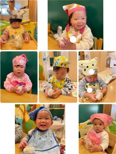 クッキング「おにぎり」 2021/12/03(金) 今日はクッキングでおにぎりを作りました。ラップに包んだご飯を両手にもって、「ぎゅっぎゅ!」と上手に握ることが出来ました☺️愛情たっぷりな美味しそうなおにぎりが完成しました!
