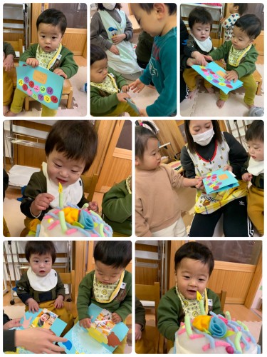 お誕生日会🎂 2021/05/18(火) 今日は5月生まれのお友達のお誕生日会がありました。お歌を歌ったり、保育者の出し物を見たりと楽しい時間を過ごしました☺️いっぱい遊んで食べて大きくなってね♪その後は芝生で遊びました!明日も天気になあれ☀️