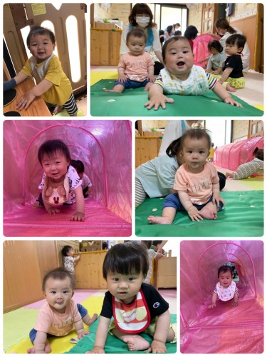 ボール遊び 2021/05/13(木) 今日はお部屋でボール遊びをしました❕いつもとは違う広いお部屋でボールと追いかけっこ🏐🍃一人歩きやハイハイを上手にしながらボールを追いかけていましたよ🚼穴にボールを入れて一生懸命集めている様子もとても楽...