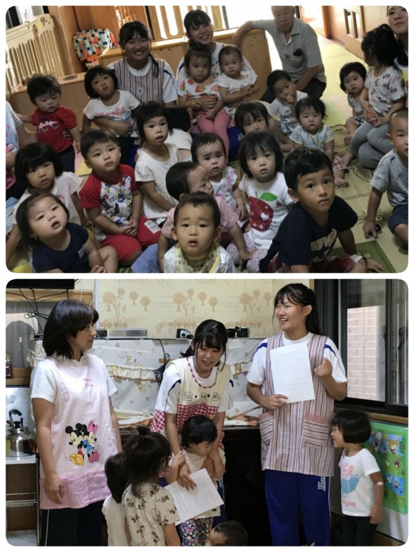今週も、保育体験として、学生さん二人が来てくれていました。「お姉ちゃん先生遊ぼう!」とすぐに仲良くなったりす組さん。週の半ばから徐々に慣れてきたひよこ組さんでした。学生さん二人とも「いっぱいおしゃべりできて楽しかった❗」「抱っこしても泣かなくなってくれて嬉しかった❗」「年齢が小さいほど、着替えさせるのが難しかった」などなど、色々と感じられたようです。子ども達も離れるのがちょっと寂しくなり、最後はべったり甘えていました。
