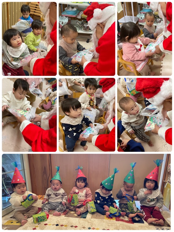 クリスマス会ではサンタクロースの登場に驚いてじーっと見つめる子や嬉しそうな子など沢山の表情が見られました!!プレゼントを貰えるとみんな嬉しそうにニコニコしていましたよ☺️