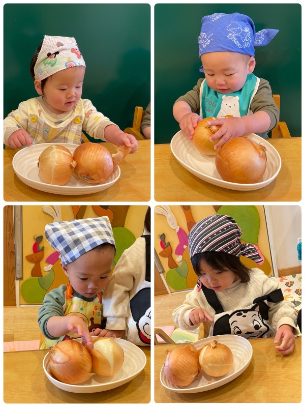 今日はクッキングで玉ねぎの皮むきをしました!みんな真剣な表情で上手にむいていましたよ🧅