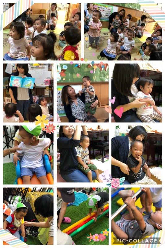 今日はベネッセのビースタジオから講師のともこ先生が来てくださり、英語をしました♪みんな、先生の真似を上手に言葉で真似できるようになってきて、ワン!ツー!と発音したりしてくれています。歌も、タイミングをきちんと分かって、振り付けをおどっていたりと、ノリノリの子どもたちでした♪そのあとは、芝生に出て滑り台や平均台、鉄棒をしました。今日もたくさん遊びました♪