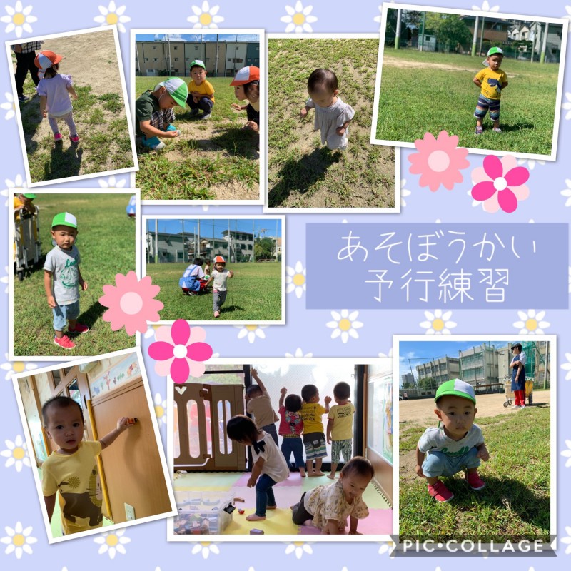 今日は遊ぼう会の予行で稲葉グランドまで行きました。久しぶりの立ち乗りバギーに嬉しそうな子どもたち。到着し、初めはサーキットをしました。平均台、鉄棒、トンネル、坂マットと、順番に回り、とっても楽しそうに張り切って頑張ってくれていました♪そのあとは、保育士の後に続き汽車になってぐるぐる歩きました。本番はお父さんやお母さんと一緒にできるので、もっともっと楽しんでくれると思います♪暑い中よく頑張ったこどもたち。今日はおうちでたくさん褒めてあげてください♪