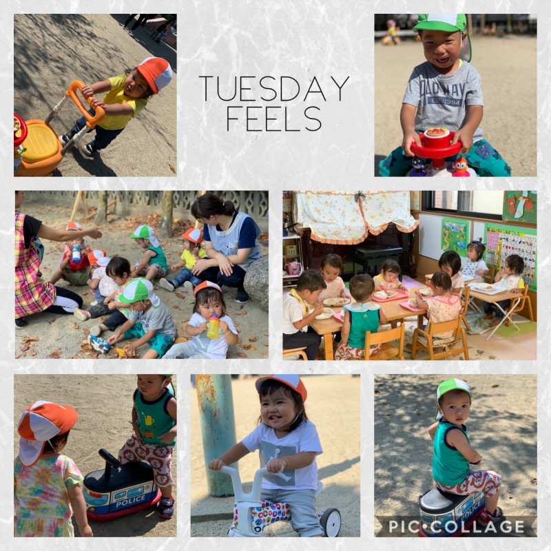 今日はお外でコンビカーをしまひた。消防車や救急車、パトカーなどの乗り物やアンパンマンなど、みんなが好きなものがいっぱいでした。給食はうさぎ組さんとりすぐみさんが何人か交代して食べました。いつもとは少し違った雰囲気で楽しかったです✨
