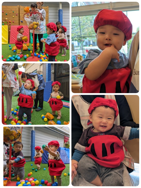今日は待ちに待ったハロウィンの会でした。大好きな絵本「だるまさんが」に変装し、笑顔満開です☺