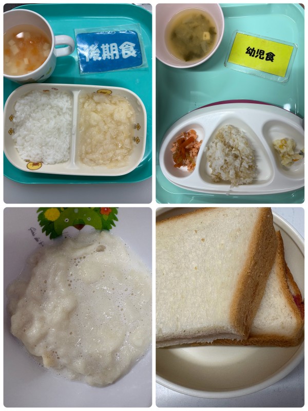 後期軟飯、白身魚の煮付け、みそ汁 15時のおやつ パン粥 完了期