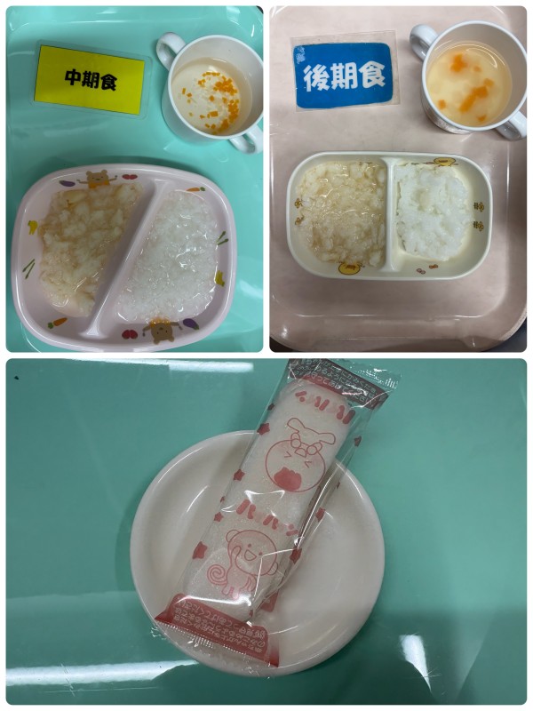 中期 7倍粥、白身魚の煮付け、みそ汁 後期 5倍粥、白身魚の煮付け、みそ汁 15時のおやつ ハイハイン