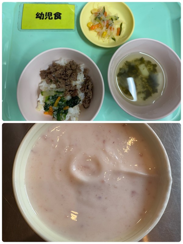 キッズビビンバ、はるさめサラダ、わかめスープ 15時のおやつ ヨーグルト(いちごジャム)