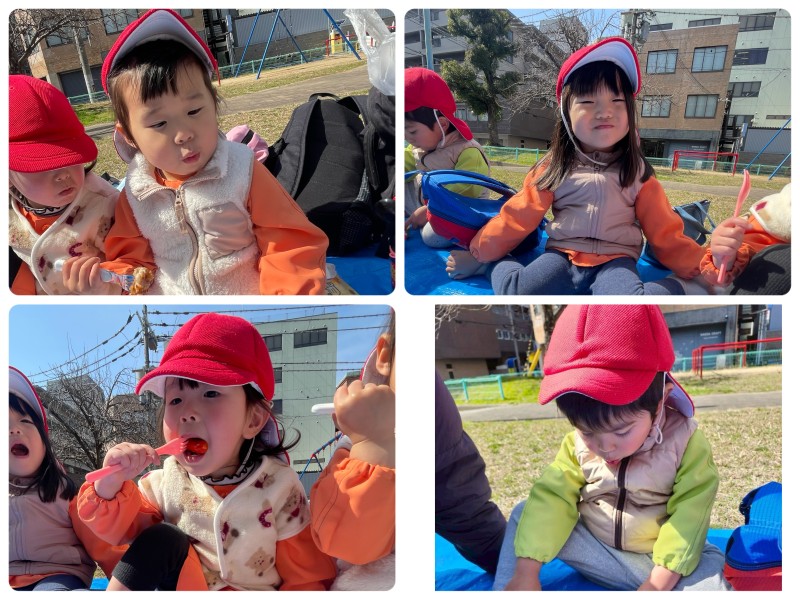 (2ページあり)楽しみにしていたお弁当!!「お腹すいた〜」とみんな大きなお口をあけてたくさん食べていました😋お忙しい中ご準備ありがとうございました!!