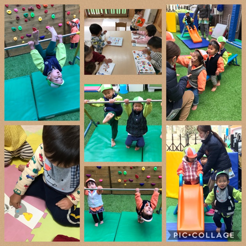 芝生で遊びました。今回は鉄棒と平均棒とすべり台です。好きな遊びを思いきり楽しんでいたうさぎ組さんでした。その後はりす組さんのお部屋で絵本を見たり、ひも通しにもチャレンジしましたよ!12月に入ってから年賀状の製作もコツコツしています。お正月にみんなのおうちに届きます。楽しみにしていてくださいね♪