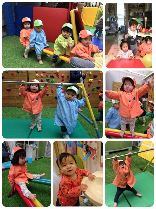 部屋でマットをしたり、芝生で遊びました。高さのあるマットに、よじ登ろうと高く足を上げたり、保育士に手を持ってもらいジャンプ!して降りるのを楽しんでいました。芝生では、鉄棒や平均台で遊びました。平均台に座って、バスごっこや「最初はグー!ジャンケンポン❗」などして遊びました。4月からの事を思うと、大きく成長した子ども達です。来年も益々元気でたくさん遊ぼうね➰🎵