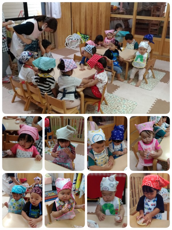 ラップで包んだご飯をギュッギュッと握って、鮭おにぎりのできあがり!早く食べたい気持ちを抑えきれないうさぎぐみさんです😋