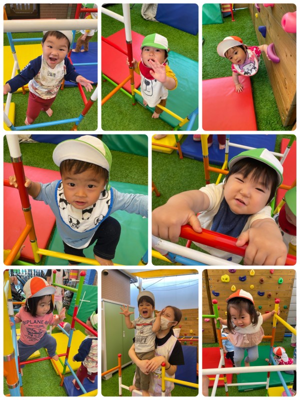今日は芝生にジャングルジムがありました!!✨みんな一生懸命頑張ったね!1番上まで登れてとっても嬉しそう!💯雨の日も元気いっぱいのうさぎ組さんでした!🐰❤︎