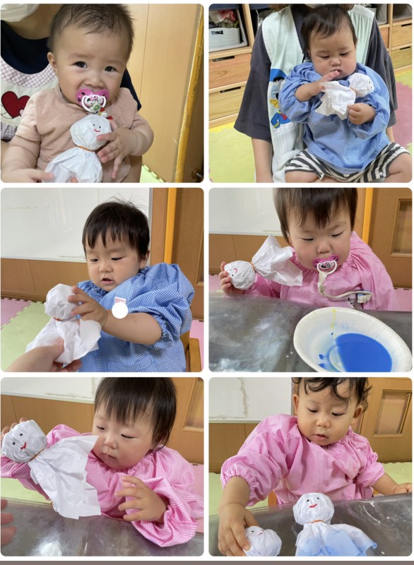 今日はてるてる坊主の制作をしました。てるてる坊主の裾部分に絵の具を滲ませ、、とても可愛いてるてる坊主が完成しました😌明日天気になあれ☀️