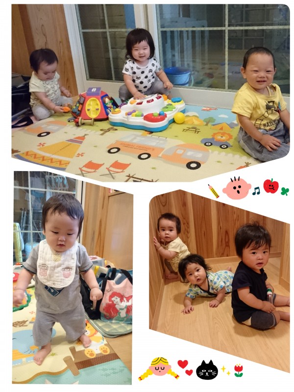 今日はベネッセのビースタジオの英会話に参加しました。保育士に抱っこされている子、1人で座っている子、どの子もみんなじっと先生が話すのを見ていました。「Good job!👍」の時は、一緒に手を前に出したり、英語の歌に合わせて手をたたいて楽しんでいました。※写真は、3時のおやつ後の様子です。