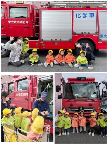 避難訓練🚒 2025/11/19(水) 今日は消防署立ち会いの避難訓練がありました❕消防士さんのお話を聞いたり、先生達の消火器訓練を見たり、興味津々な子どもたち🧑🚒大好きな消防車を見ることができて大喜びのうさぎ組さんでした🚒