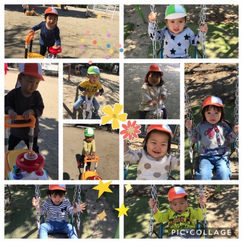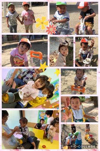 公園で遊んだよ♪ 2019/10/16(水) 今日は公園へ出ると、アンパンマンのコンビカーや三輪車、ブランコで遊んでいました♪お友達と一緒に遊ぶ姿が増えてきて、コンビカーを押しながら追いかけっこをして楽しんだり、手を繋いで歩いたりととっても可愛...
