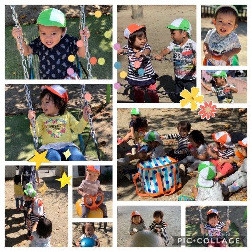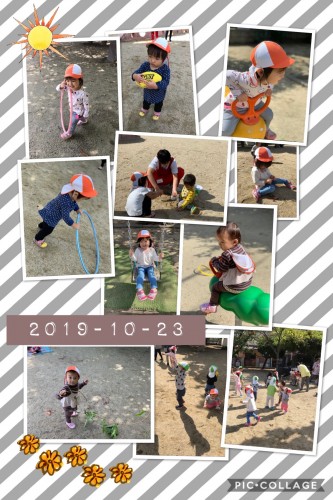 滑り台をしたよ♪。.:* 2019/10/18(金) 今日は公園へ行くと、ボールや三輪車を出して遊んでいました。最近はフラフープが人気なようで、フラフープを転がしたり、輪の中に入って歩いたりととっても楽しそうに遊んでいます♪ブランコに乗ると、「おっきい...
