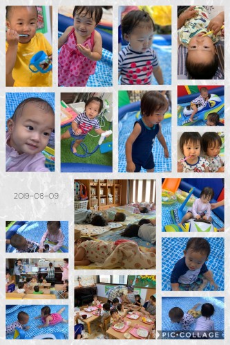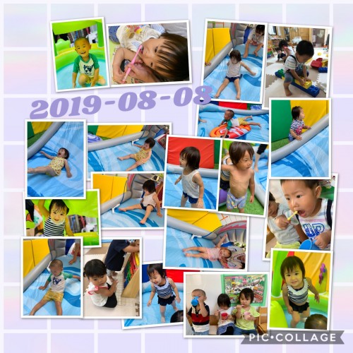 今日も元気に過ごしました! 2019/08/08(木) 今日もお外はとても天気が良く暑い日でした。久しぶりにプールに入れたお友達もいて、プールで大はしゃぎ!「プールプールー♪」ととても嬉しそうでした。サメのスライダーもとっても人気で何度も何度も滑っていま...