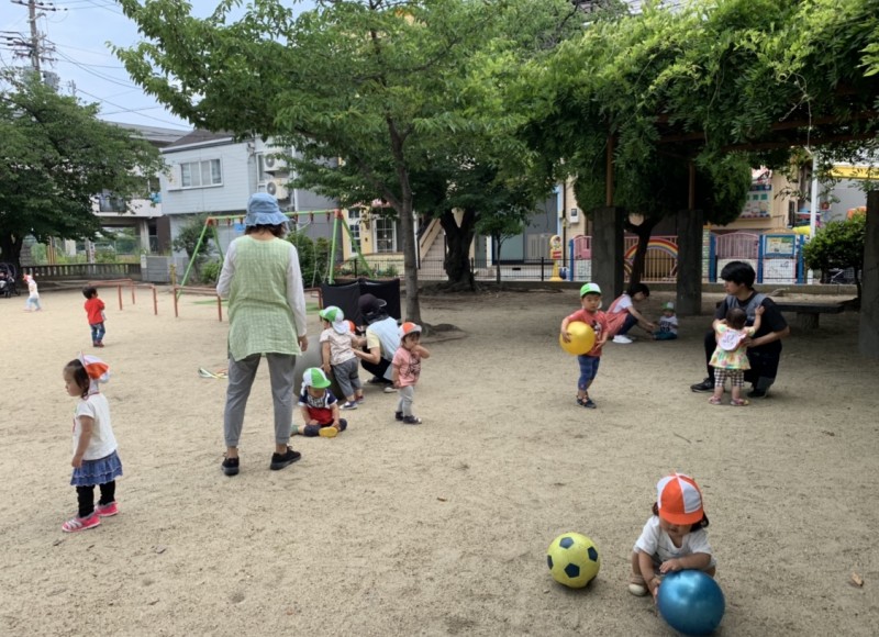 お外でボール遊びをしました。 2019/06/11(火) 今日はお外でボールやフラフープで遊びました。天気も良く風も気持ち良い日でした。青空の下ボールを転がしたり、追いかけたり、ポンっと投げてみたり沢山の遊びができました。フラフープではお友達と電車ごっこ...