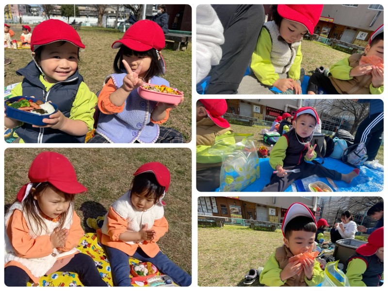 (2ページあり)楽しみにしていたお弁当!!「お腹すいた〜」とみんな大きなお口をあけてたくさん食べていました😋お忙しい中ご準備ありがとうございました!!